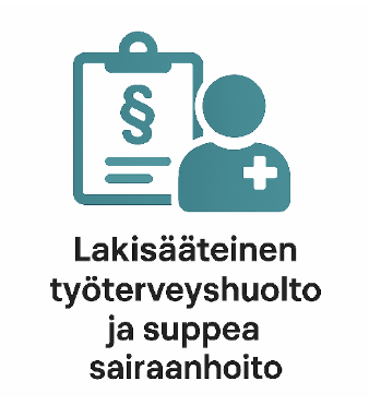 (Kelan korvausluokat I ja II) Suppea sairaanhoitosopimus sisältää lakisääteisen työterveyshuollon lisäksi työterveyslääkärin, -hoitajan ja työfysioterapeutin työterveyspainotteisen vastaanoton, yleislääkäritasoiset laboratorio- ja kuvantamistutkimukset sekä työfysioterapeutin suoravastaanoton.